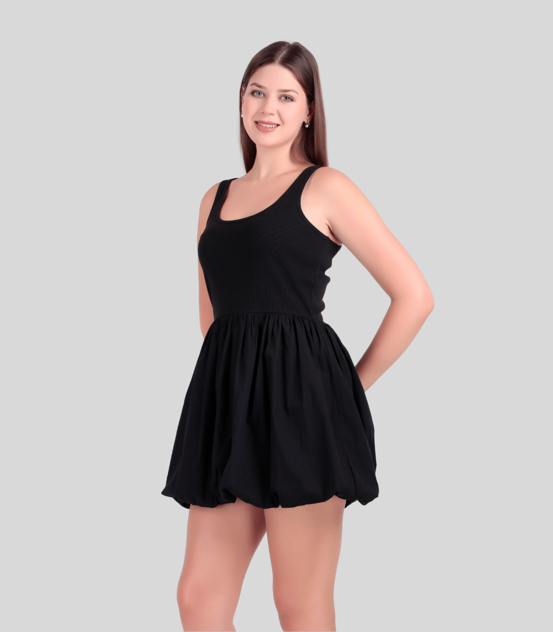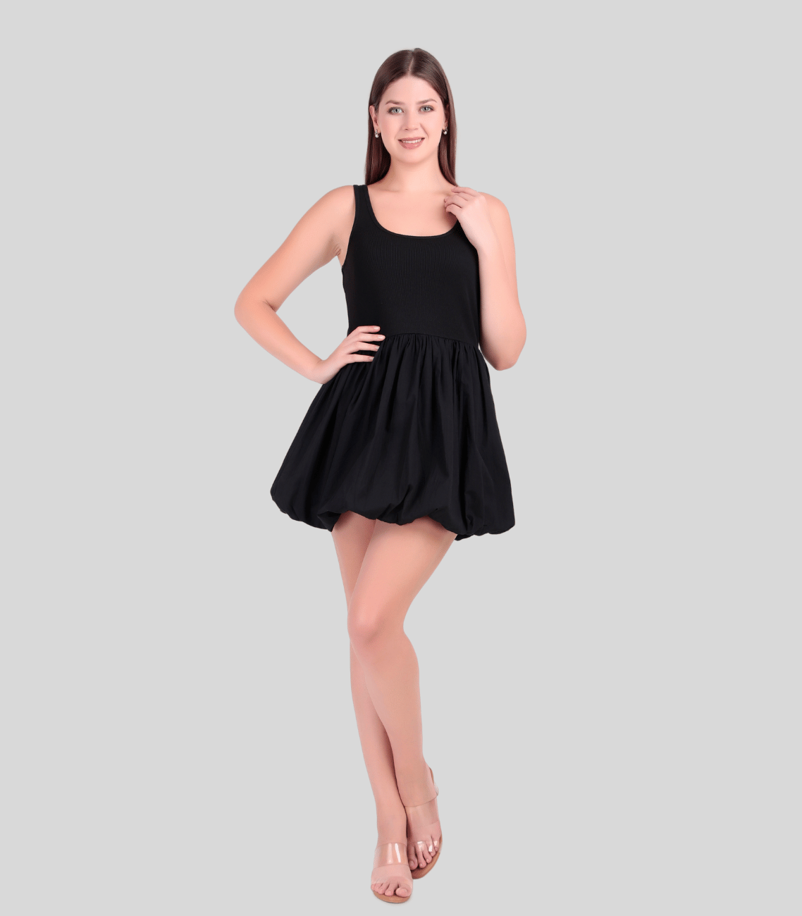 Experience the perfect combination of comfort and style with Poshwave’s Black Short Balloon Dress—a must-have addition to your fashion collection.