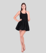 Elevate your wardrobe with the Black Short Balloon Dress from Poshwave, a perfect blend of contemporary flair and timeless elegance. Crafted from 100% pure cotton, this dress ensures breathability and comfort, making it an ideal choice for various occasions.