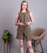 Elevate your everyday look with this camel brown linen cord set, featuring a relaxed-fit top and matching shorts. Made from breathable linen, this set combines effortless style with all-day comfort – perfect for sunny days or weekend getaway