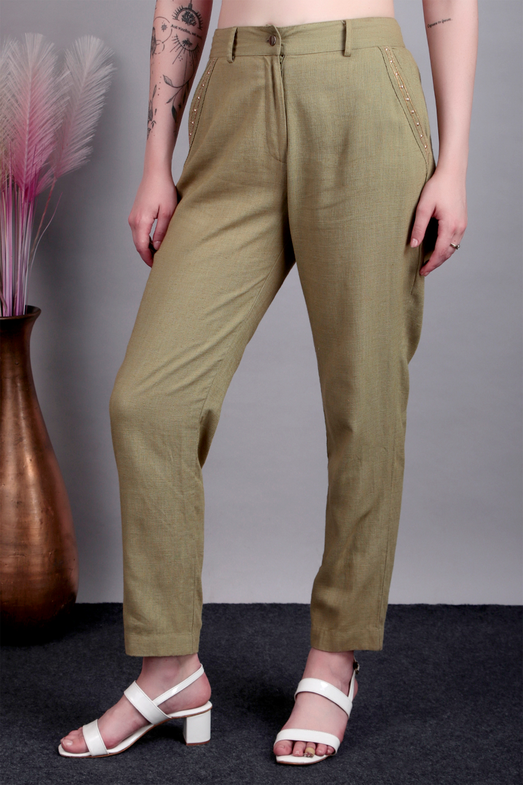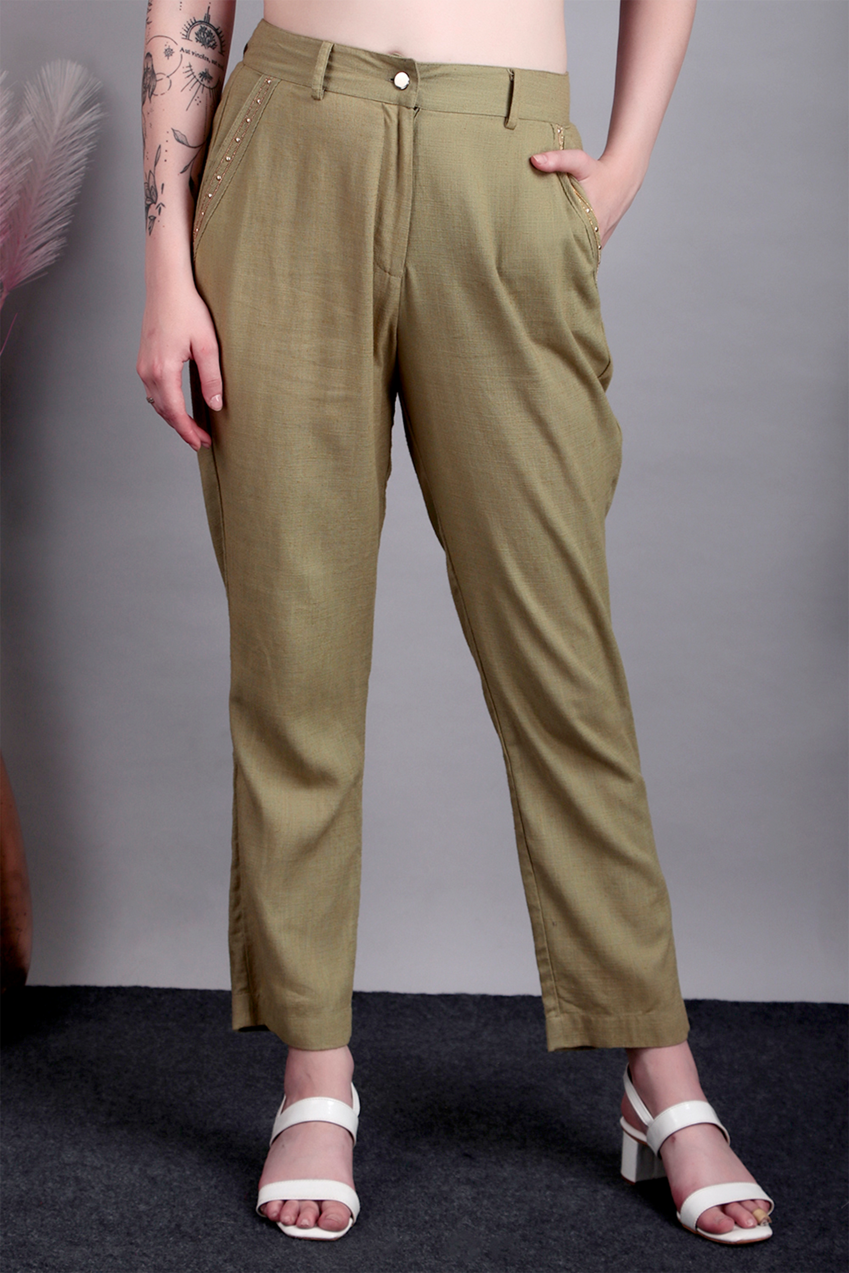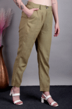 Step into laid-back elegance with these olive green linen pants, crafted for breathability and ease. The earthy tone and relaxed fit make them a go-to for effortless everyday style.